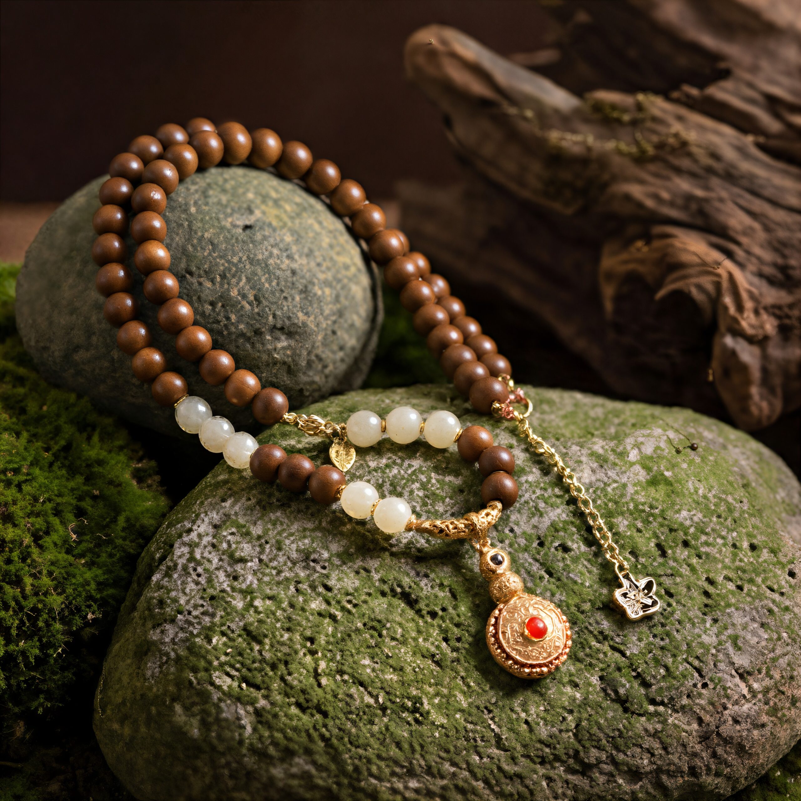 This pendant aligns the natural properties of its materials precisely with the cyclical energy of the four seasons, creating a dynamic, balanced system of personal protection.